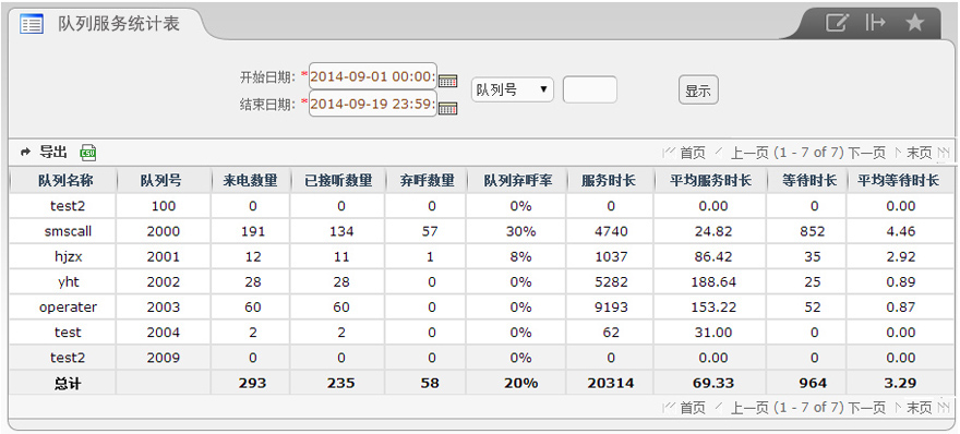 队列服务统计表