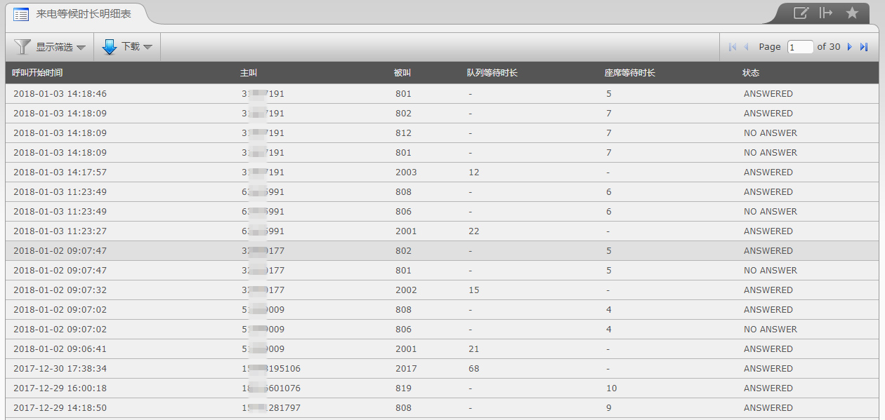 来电等候时长明细表