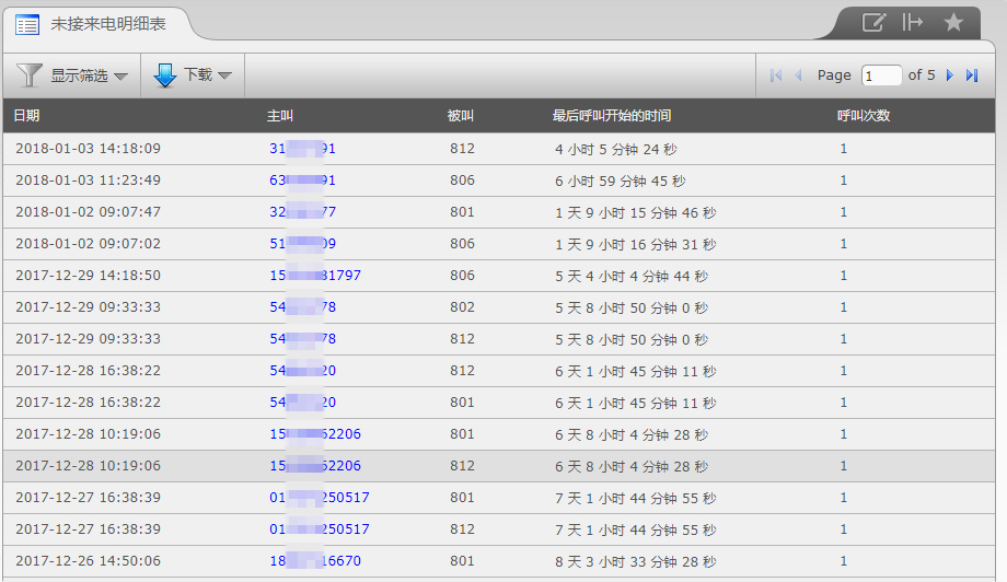 未接来电明细表