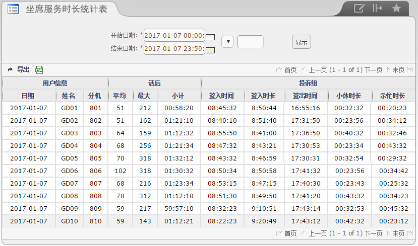 【说明】统计坐席在线时长、话后时长等
