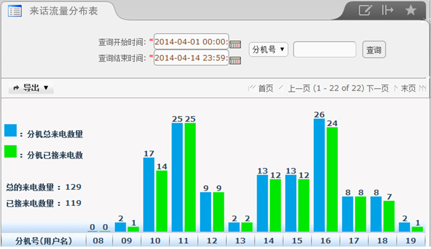 【作用】通过报表可以看出哪些时段来电比较多,为合理排班提供数据参考